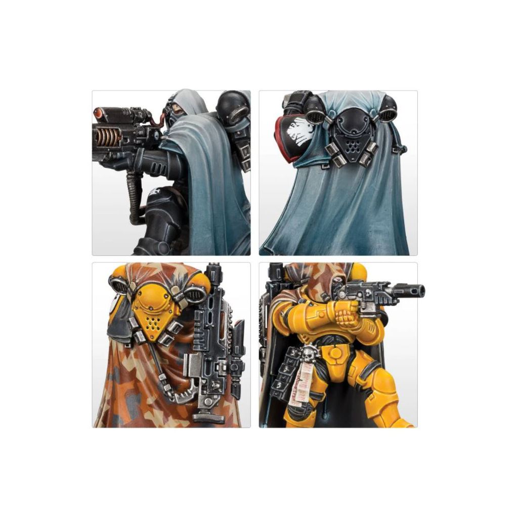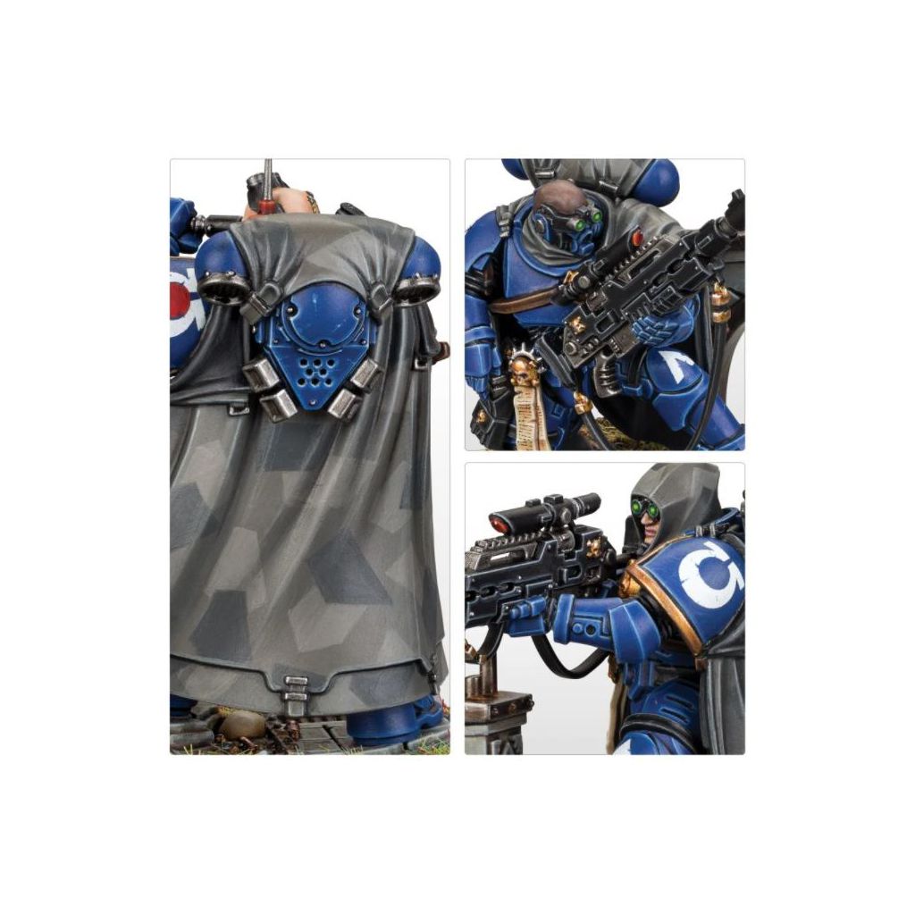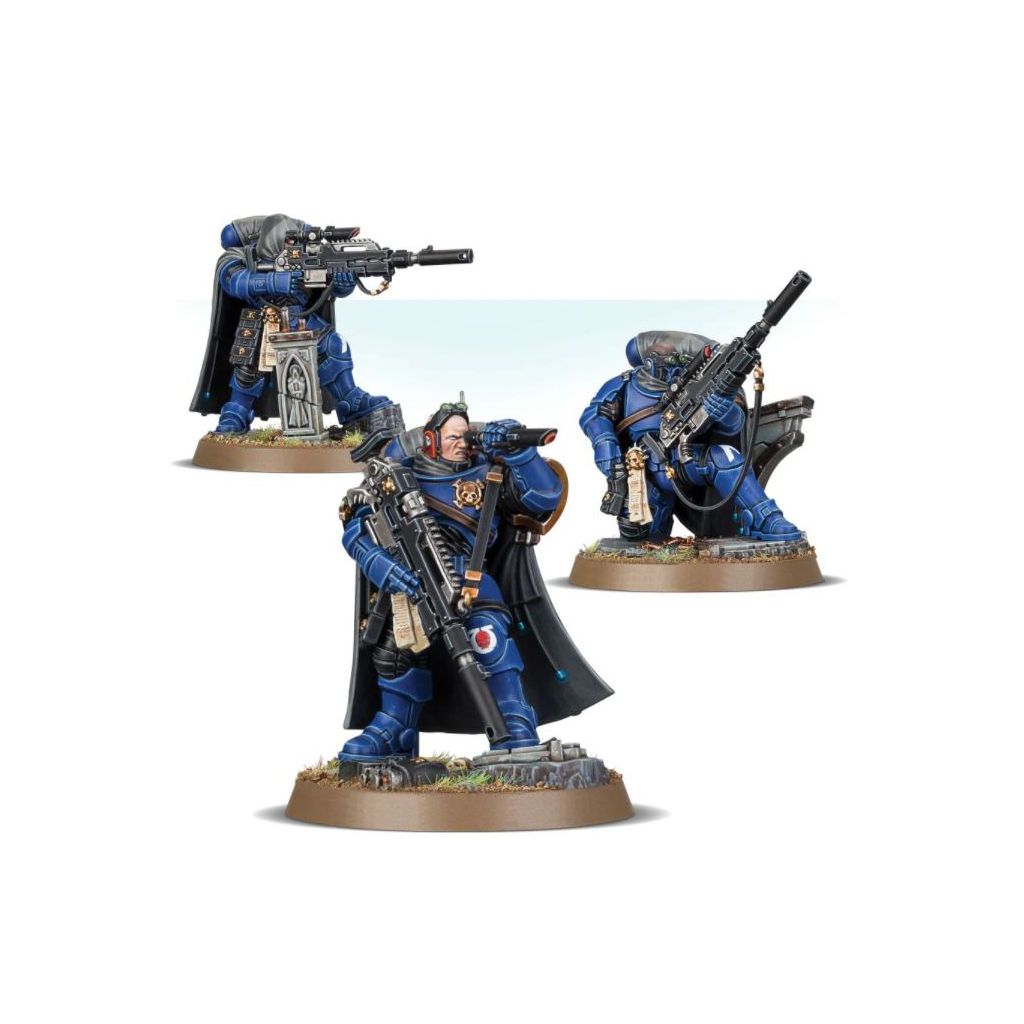 Chaque figurine de cette escouade peut être armée d'une arquebuse laser, parfaite contre les cibles les plus solides, ou d'un fusil bolter de sniper doté d'un éventail de munitions pour parer à toute éventualité. Le Sergeant peut sinon être doté d'une carabine bolter Instigator. On peut assembler les trois figurines avec ou sans casque, et le kit propose diverses pièces optionnelles qui vous permettent de rendre l'unité plus distincte.