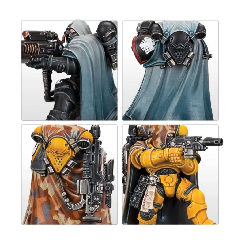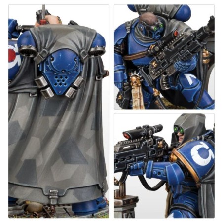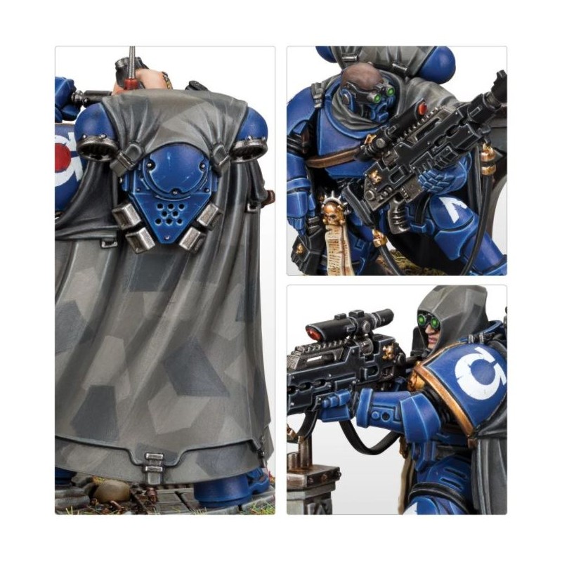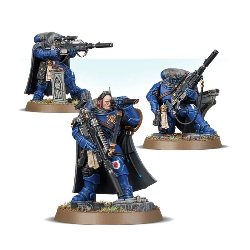 Chaque figurine de cette escouade peut être armée d'une arquebuse laser, parfaite contre les cibles les plus solides, ou d'un fusil bolter de sniper doté d'un éventail de munitions pour parer à toute éventualité. Le Sergeant peut sinon être doté d'une carabine bolter Instigator. On peut assembler les trois figurines avec ou sans casque, et le kit propose diverses pièces optionnelles qui vous permettent de rendre l'unité plus distincte.