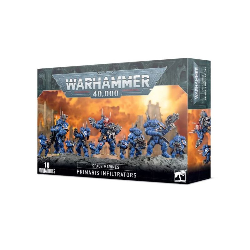 Description du produitVifs et légers dans leur armure Mk X Phobos, les Primaris Infiltrators ont pour tâche de perturber les transmissions adverses et de saboter les cibles qui se présentent. Le premier signe qu'en voit l'ennemi est la cascade de fumée asphyxiante quand les Infiltrators lancent un barrage de grenades pour masquer leur progression. Alors que les défenseurs tentent de percer le brouillard, les Space Marines abattent leurs cibles par des salves disciplinées, éclairant leurs victimes grâce aux auguroscopes de leurs carabines bolters d’élite.