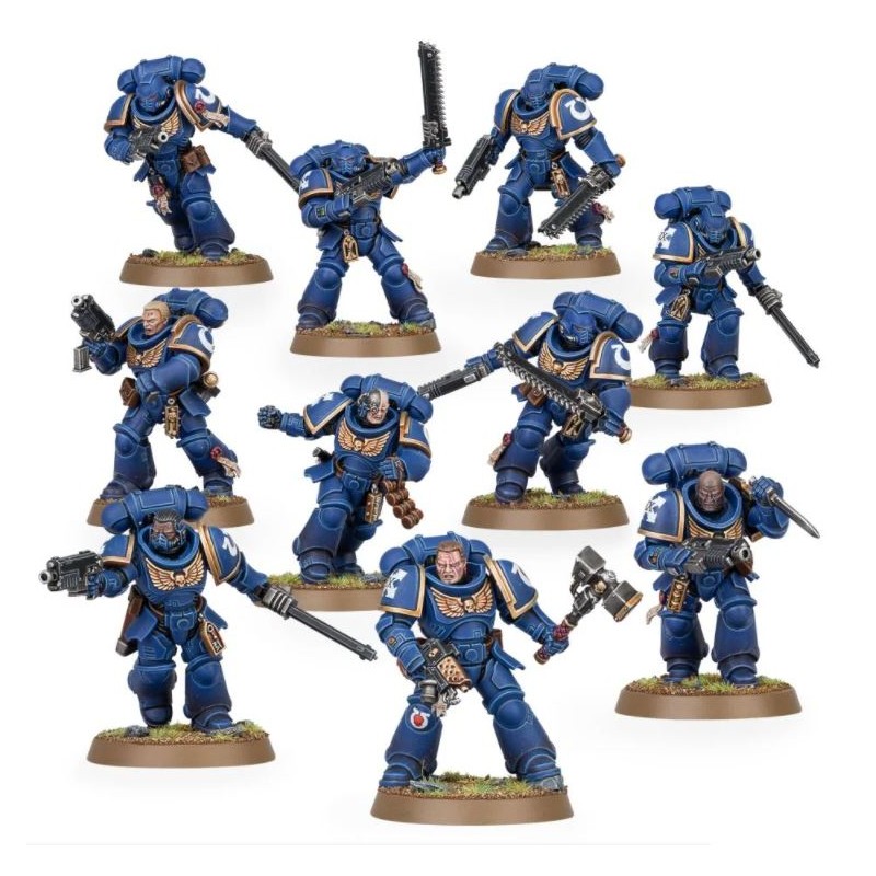 Ce kit est fourni avec 10 socles ronds Citadel de 32mm et une planche de décalcomanies pour Ultramarines.