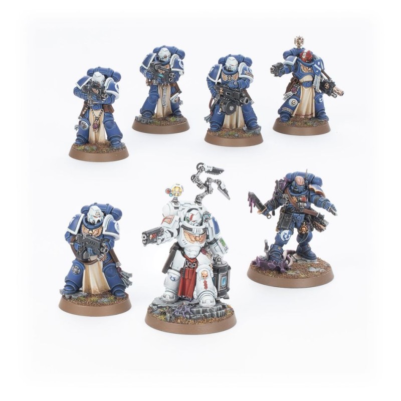 – 5 Vétérans Sternguard (dont 1x Sergent Vétéran Sterngaurd avec arme combinée, 1x Vétéran Sternguard avec bolter lourd, 1x Vétéran Sternguard avec are combinée et 2x Vétérans Sternguard avec fusils bolter Sternguard).