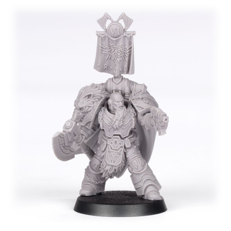 Ce kit en résine permet d'assembler un Praetor de Légion pour les Space Wolves. Il est équipé d'une énorme hache de Fenris et d'un pistolet bolter. Il porte une armure décorée de sublimes motifs fenrissiens pour souligner son appartenance à la VIe Légion. Il se distingue de ses frères par sa cape en peau de loup et la bannière montée sur son paquetage dorsal. Ce puissant guerrier et chef émérite est prêt à mener la charge. Vous trouverez une tête portant un casque ainsi qu'une nue arborant une impressionnante barbe.