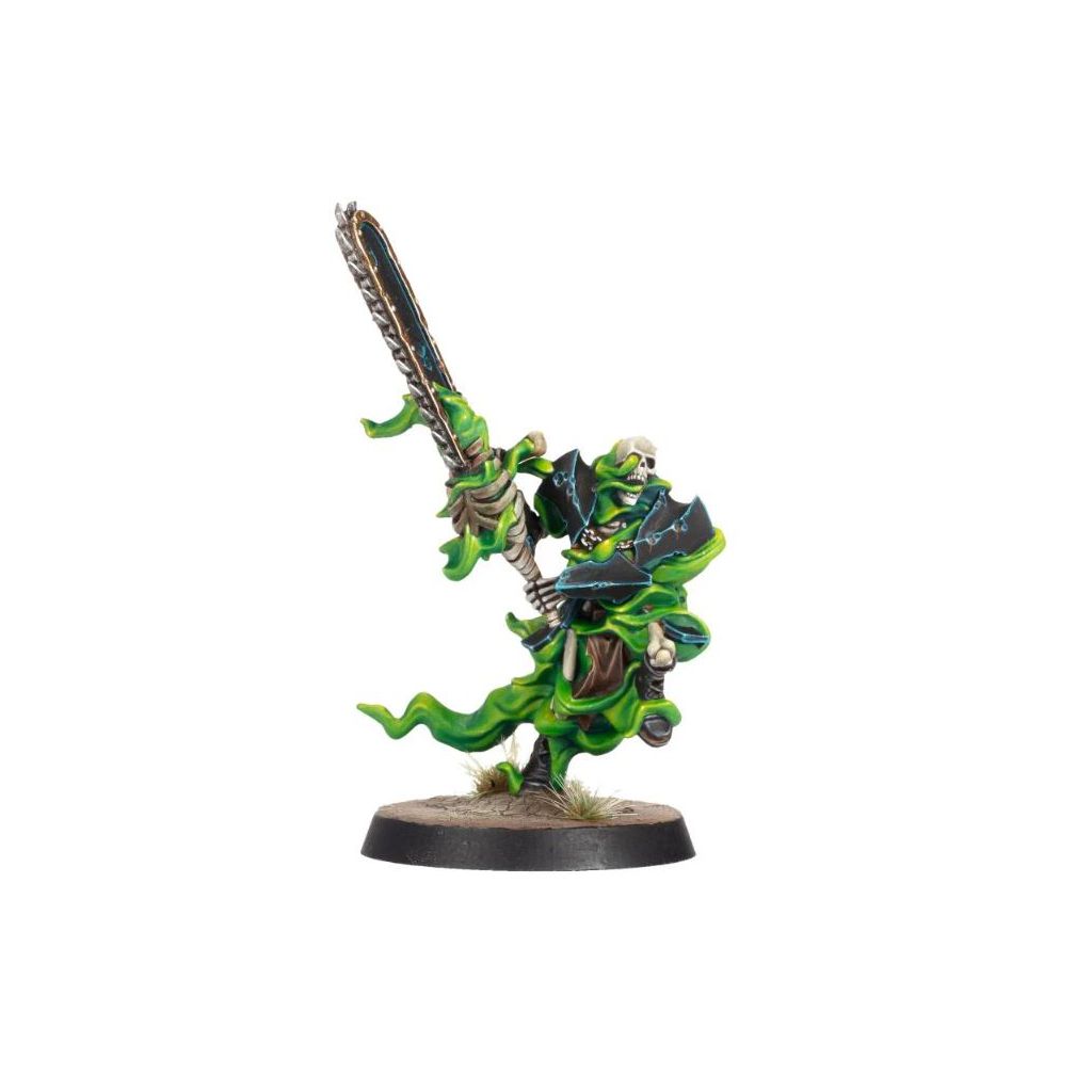 Description du produitBryce "The Slice" Cambuel était un cinglé maniant la tronçonneuse pour les Ostermark Bulls, avant qu'un malheureux dérapage ne coupe sa carrière - et son cou - plutôt court. Un rappel de ne jamais perdre la tête sur le terrain ! Heureusement, ce squelette psychotique est revenu de sa retraite et de sa tombe pour tourmenter à nouveau l'astrogranite. Les rumeurs persistent à dire que ses flammes émeraudes sont le résultat d'une fureur éternelle - peut-être parce que Cabalvision continue de montrer les moments forts de sa disparition embarrassante.