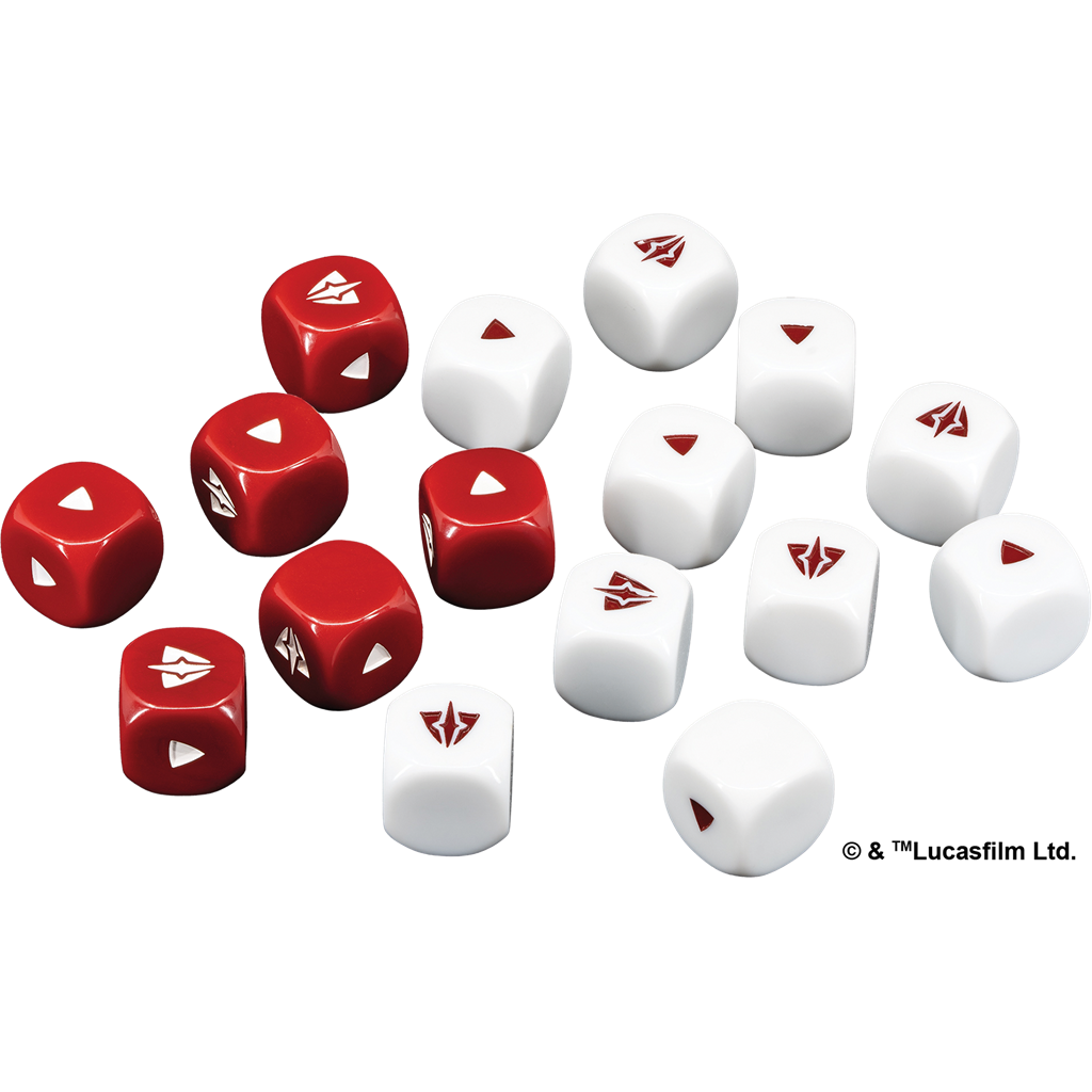 Le Set de Dés de Star Wars : Légion contient seize dés similaires à ceux contenus dans la boîte de base.