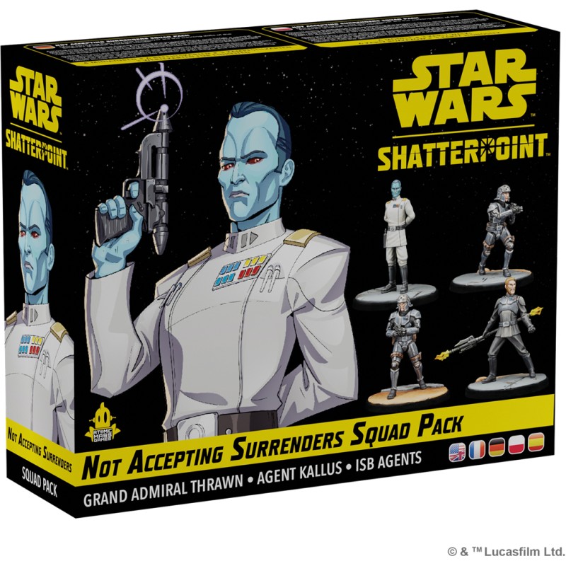 Description du produitLe méchant préféré des fans, le Grand Amiral Thrawn, n'accepte pas les redditions, mais il amène son escouade à Star Wars™ : Shatterpoint. L'agent Kallus est l'unité secondaire présentée et deux agents du BSI servent d'unités de soutien pour ce pack d'escouade.