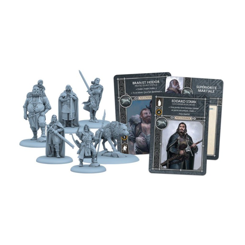 Le nord aligne ses héros sur le champ de bataille ! La bannière du Loup-Garou est portée par des personnages d’exception. On peut compter sur Howland Reed et Rodrik Cassel pour mener des unités spéciales isolées, tandis que Brynden Tully et Eddard Stark peuvent diriger le gros des forces en s’appuyant sur des stratégies éprouvées. Quant à Bran Stark et à ses compagnons, Hodor et le loup-garou Été, leur simple présence suffit à enhardir les hommes !