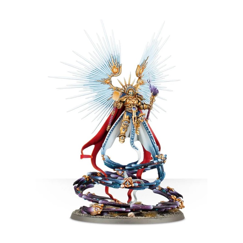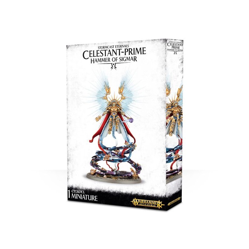 Ce kit plastique fournit tout le nécessaire pour assembler une incroyable figurine de Celestant-Prime. Armé de Ghal Maraz - le légendaire Marteau de Sigmar - et d'un sceptre de chute de comète, capable de faire tomber du ciel des météores pour anéantir l'ennemi dans un éclat furieux, ce personnage s'élève sur une tornade d'énergie céleste, il porte une cape ample et détaillée, et on peut l'assembler avec les bras levés ou baissés. Il se compose de 40 pièces en tout, avec un socle rond Citadel de 100mm.