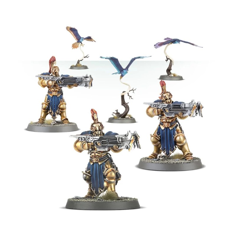 De plus, ce kit permet de monter 3 Aetherwings, et les Vanguard-Raptors peuvent au choix être assemblés avec des arbalètes Longstrike.