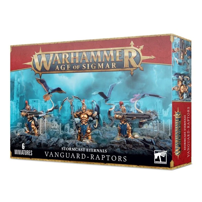 Ce kit est composé de 71 pièces, et il est fourni avec une planche de décalcomanies et 3 socles ronds Citadel de 40mm (pour les Vanguard-Raptors avec arbalètes Hurricane), 3 socles ovales Citadel de 60x35mm (pour les Vanguard-Raptors avec arbalètes Longstrike) et 3 socles ronds Citadel de 32mm (pour les Aetherwings).
