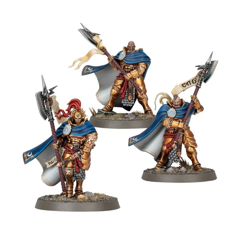 Armés de magnifiques hallebardes, ces guerriers sont redoutables en mêlée, tandis que leur lien spirituel avec leur seigneur leur permet d'intercepter les attaques qui lui sont adressées.