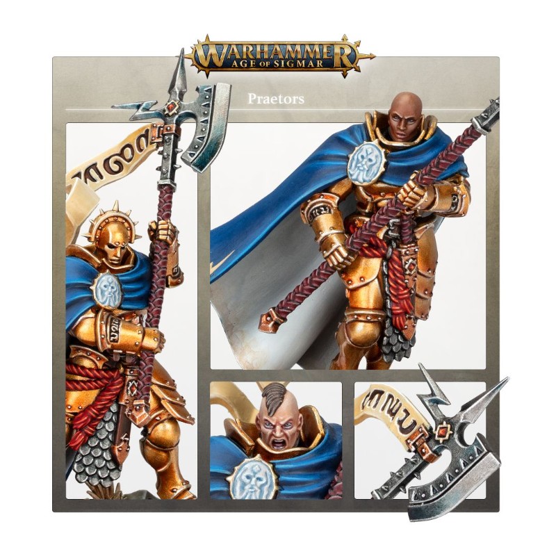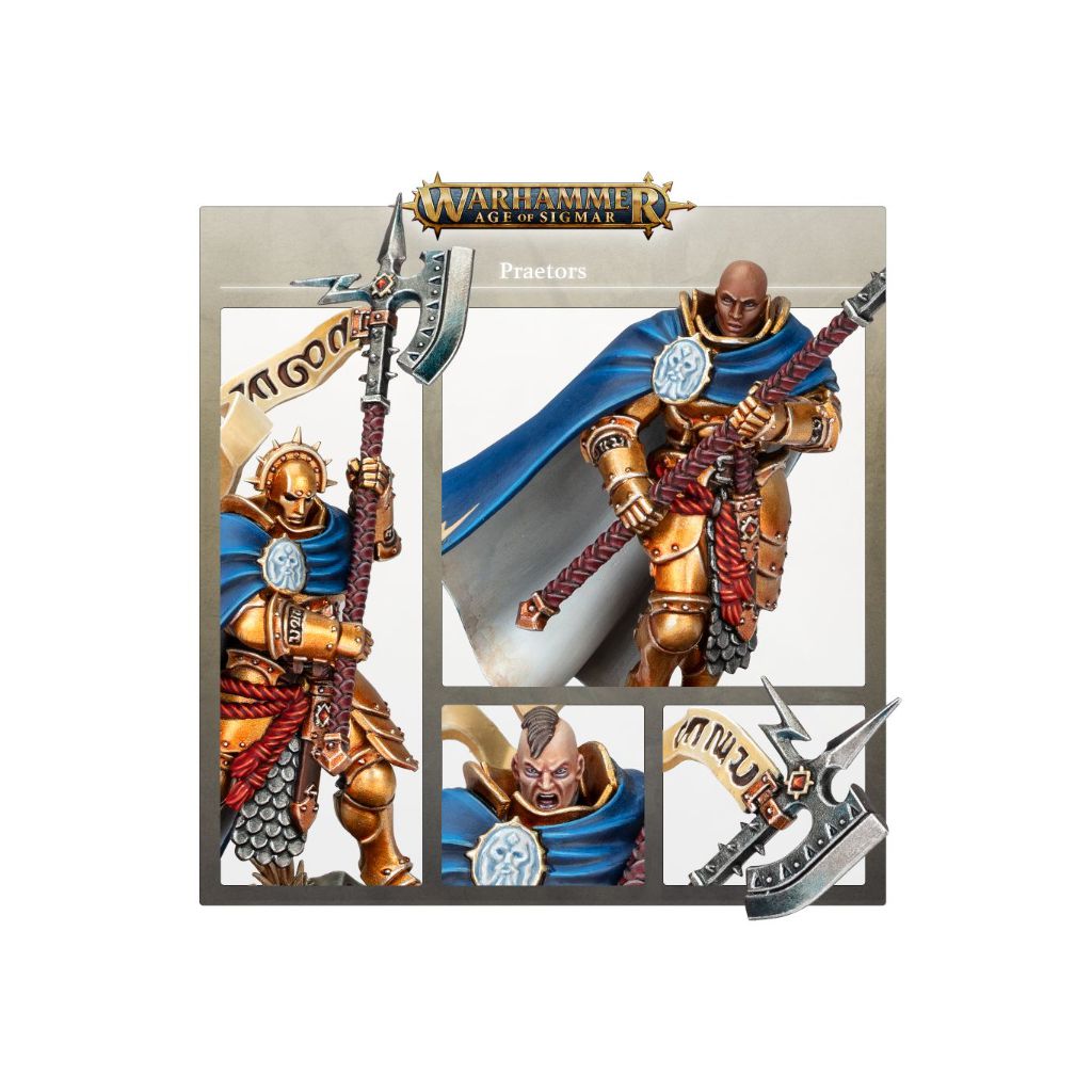 Ce kit inclut aussi les options pour assembler un Praetor-Primus. Le kit est fourni avec trois socles ronds Citadel de 40mm. Ces figurines sont fournies non peintes et nécessitent assemblage – nous recommandons d'employer la Colle Plastique Citadel et la peinture Citadel.