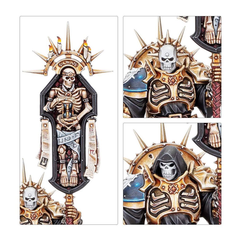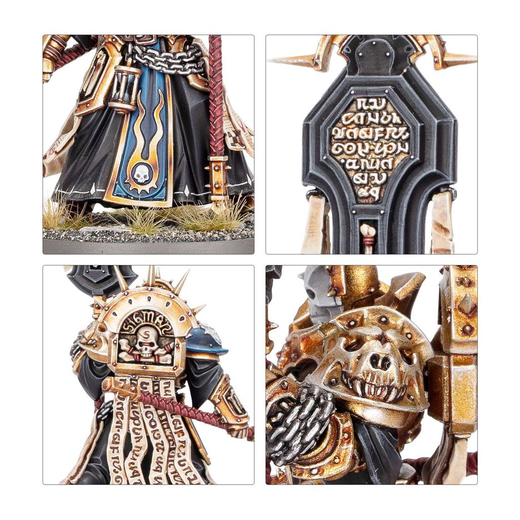 Ce kit en plastique permet d'assembler un Seigneur-Relictor, un prêtre macabre pour mener vos Éternels de l'Orage au combat. D'une part, ces prêtres assurent la santé spirituelle de leurs frères et sœurs, mais ils les défendent aussi au combat à l'aide de leur énorme marteau relique et mènent la charge dans les combats les plus intenses. Vous trouverez deux options de casque en forme de crâne, l'un avec un cimier formant un halo et un autre couvert d'une capuche.