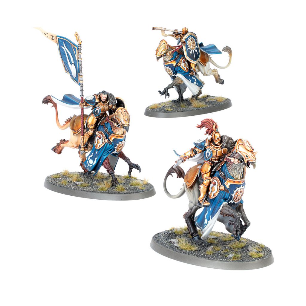 Ce kit en plastique permet d'assembler trois Palladors Foudroyeurs, une unité de guerriers montés et à l'impact dévastateur, pour les armées d'Éternels de l'Orage dans Warhammer Age of Sigmar. Chacun de ces experts agiles du combat rapproché peut être armé au choix d'une épée ou d'une lance. Vous trouverez également des options pour assembler vos figurines avec ou sans casques, ainsi que les éléments nécessaires pour assembler un Champion, un Musicien et un Porte-étendard.