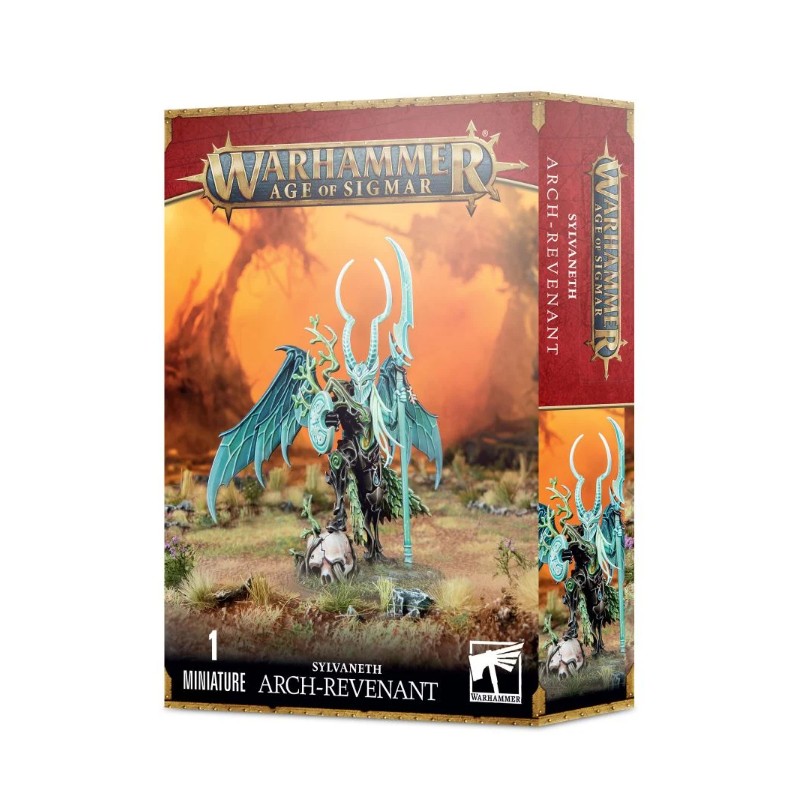 Description du produitLes Arch-Revenants planent loin au-dessus du champ de bataille, portés par les ailes d'un Zéphrite. Ils plongent pour frapper là où l'ennemi est le plus vulnérable, et leur présence régalienne inspire les Sylvaneths à proximité, en les emplissant de courage et d'agressivité.