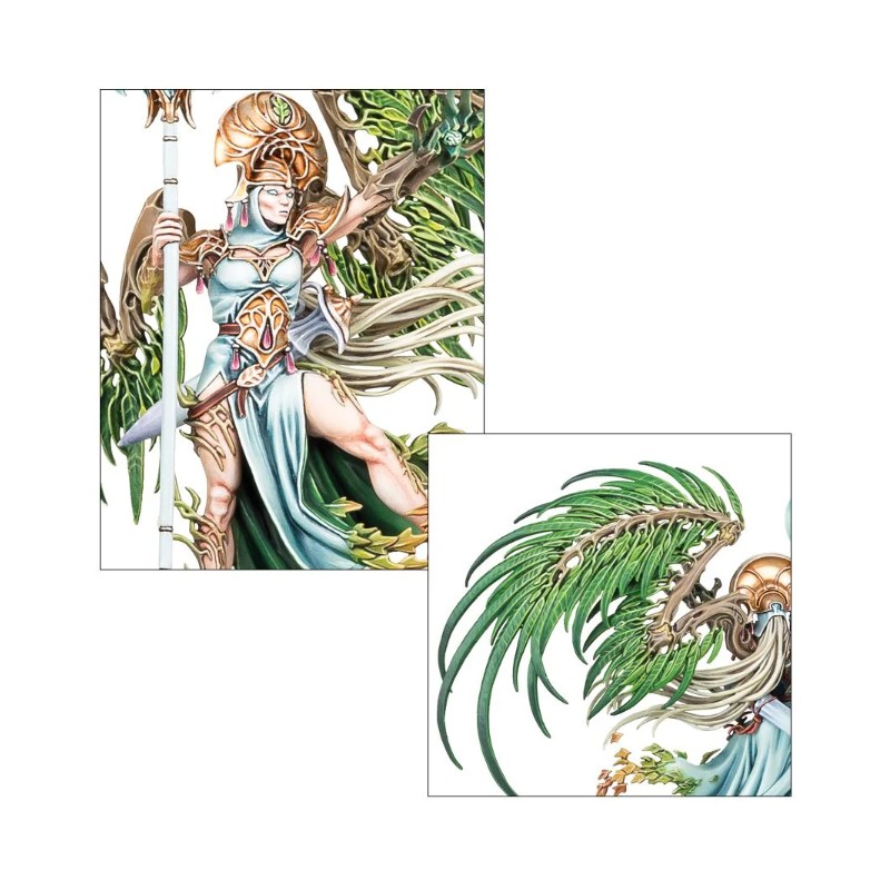 Description du produitLa renaissance de l'ancienne et puissante Alarielle the Everqueen dans la terre qu'elle aimait déchaîne une vague croissante d'espoir et de fureur, de deuil et d'exaltation. Elle est la déesse de la magie de la vie; partout où elle se rend juchée sur son immense Wardroth Beetle, de nouvelles pousses sortent en une éclosion de couleurs, de force et de passion. Elle diffuse à travers les Royaumes Mortels le contenu de ses amphores d'âmes, du pollen magique qui peut faire sortir du sol de nouveaux sylvaneths, ou bien asphyxier ses ennemis. Le courage qu'elle instille chez ses alliés n'a d'égal que la haine qu'elle voue à ses ennemis – Alarielle the Everqueen brûle d'un ardent désir de vengeance, et ses ennemis feraient mieux de fuir.