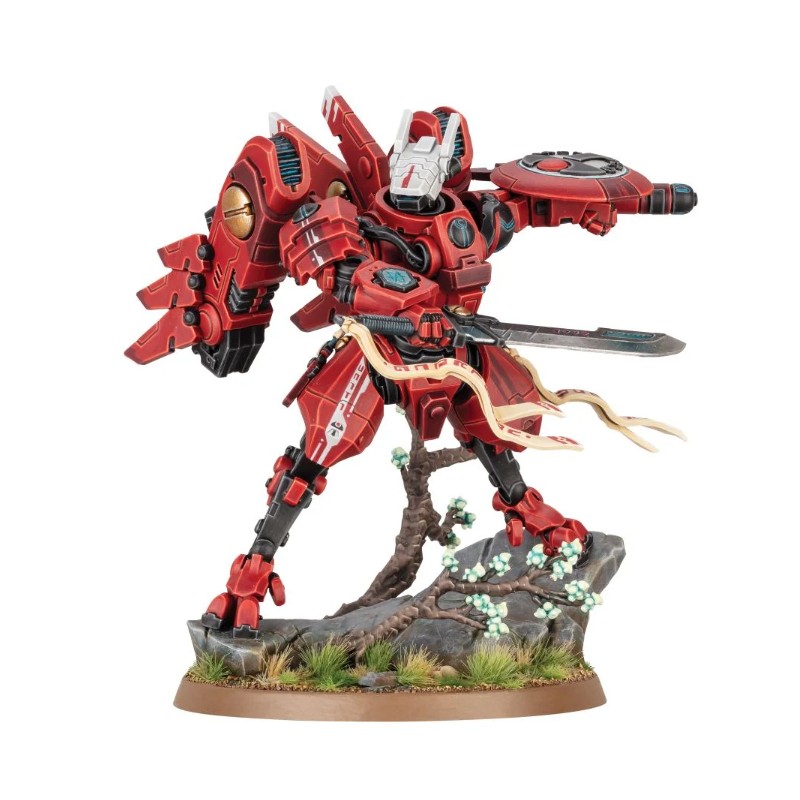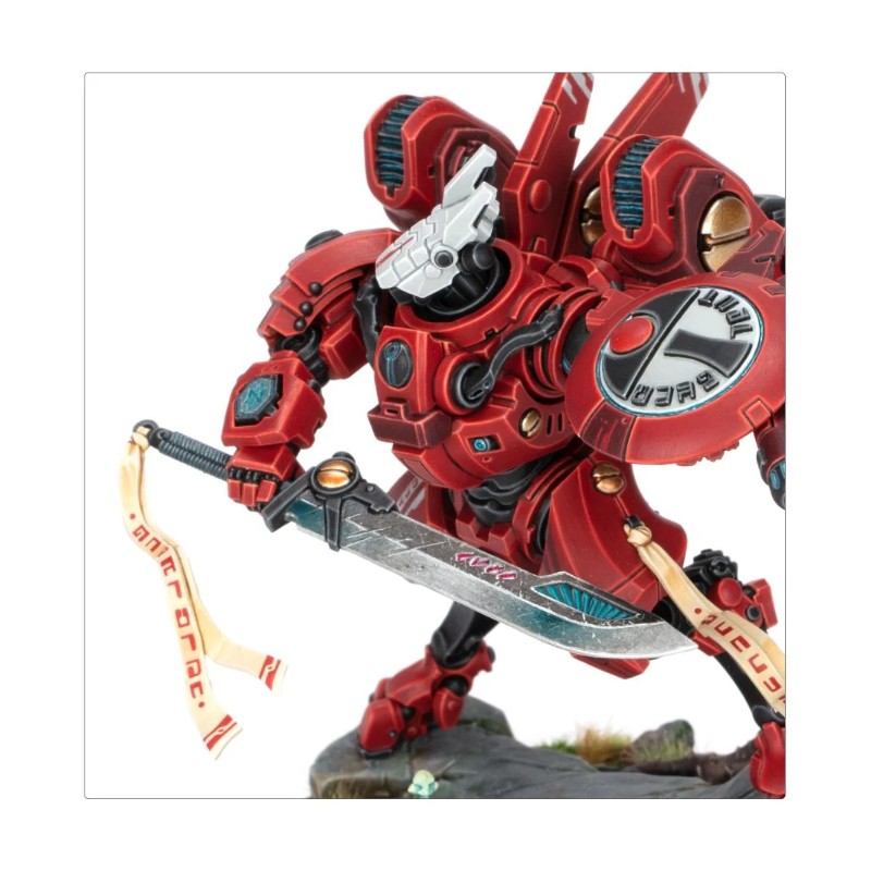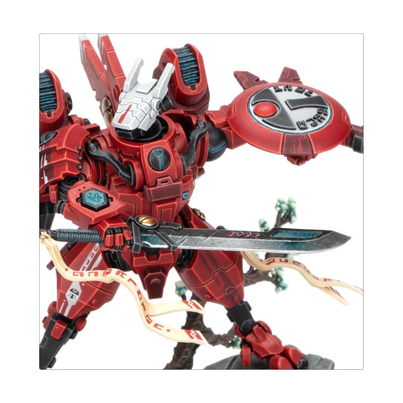 Ce kit plastique permet d'assembler le Commandeur Farsight, le chef des Enclaves Farsight séparatistes de l'Empire T'au. Son exo-armure XV-86 Supernova personnalisée dispose d'une technologie avancée qui lui confère une agilité et une mobilité accrues, ce qui lui permet d'exploiter au mieux sa prodigieuse habileté à l'épée. Farsight manie la mystérieuse Lame de l'Aube dans une main, et un fusil à plasma froid ainsi qu'un générateur de bouclier dans l'autre. L'équipement de cette figurine légendaire est couvert de détails, du couteau rituel accroché à sa cuisse jusqu'à l'icône des Enclaves Farsight gravée sur son bouclier. Sa pose héroïque sur son socle scénique fait du Commandeur Farsight une pièce centrale saisissante pour toute collection ou armée.