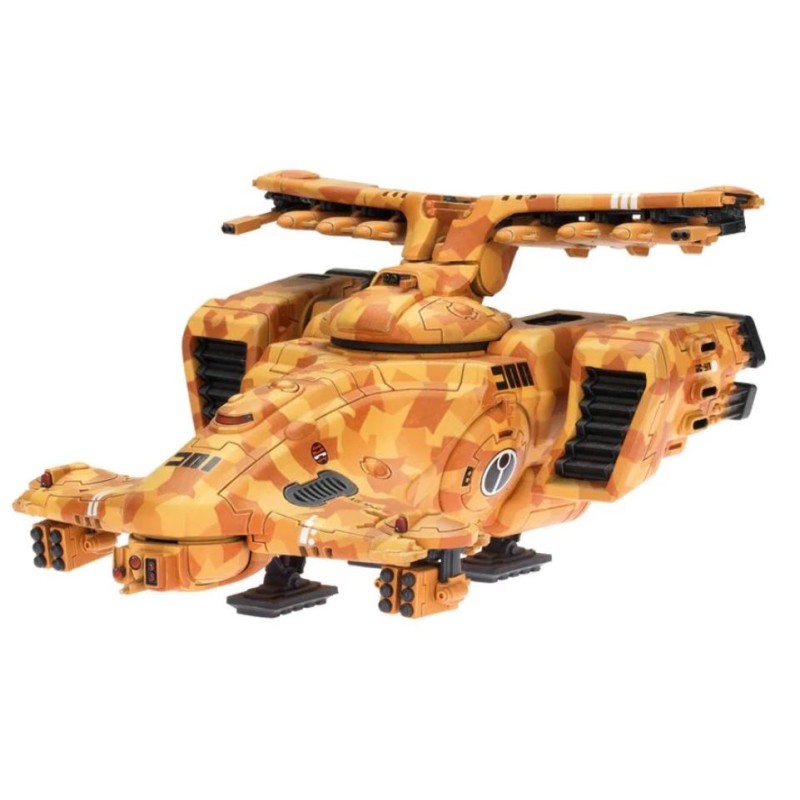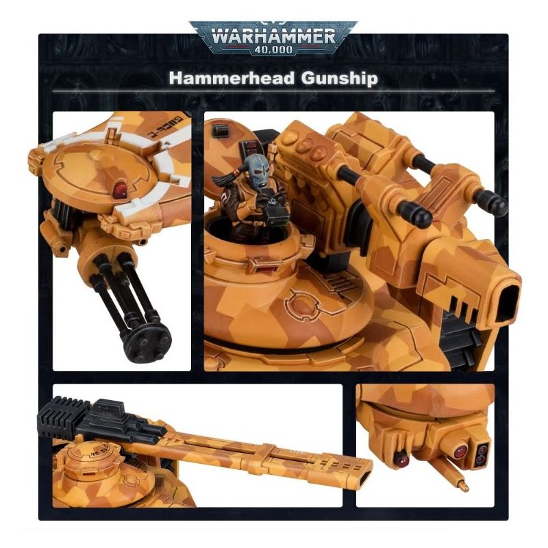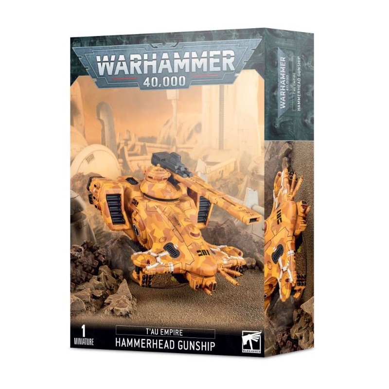 Le Hammerhead Gunship est une pièce centrale impressionnante dans une collection de figurines de l’Empire Tau. Ce blindé se caractérise par son large nez, dont les extrémités accueillent une paire de canons à induction ou de systèmes de missiles autodirecteurs. Les panneaux du châssis s'incurvent sur l'arrière en s'élargissant afin d'accueillir la tourelle de la redoutable arme principale, soit un canon-rail soit un canon à ions. Le char possède deux réacteurs vectoriels, qui peuvent pivoter selon divers angles. Le kit propose aussi deux améliorations d'armes optionnelles sous la forme de puissants missiles à guidage.