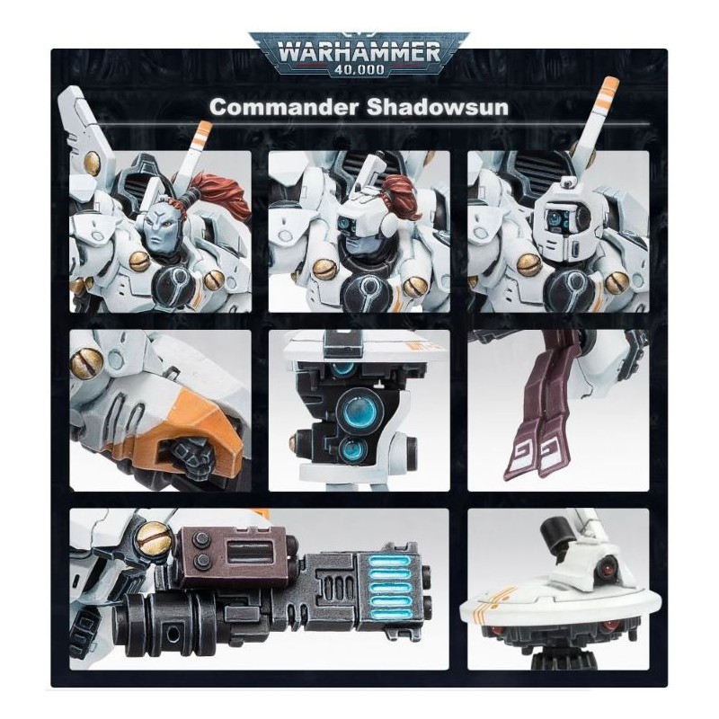 Description du produitO’Shaserra, dite Commander Shadowsun, est une guerrière d'exception doublée d'une tacticienne magistrale. Elle bondit à travers le champ de bataille dans son exo-armure XV22, recourant à ses systèmes de visée avancés et à sa technologie de furtivité sophistiquée pour identifier et traquer sa proie sans être vue. Avec son éventail d'armes elle est le fléau de quasiment tous les ennemis – ses éclateurs à fusion se rient des blindages les plus lourds, ses nacelles de missiles éventrent les véhicules légers et son lance-fléchettes déchiquette quiconque s'approche trop, dans une gerbe de projectiles acérés.