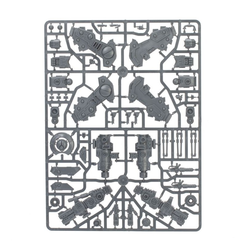 Les Exo-armures Crisis peuvent chacune être assemblées les pieds au sol ou à l'aide de tiges volantes, comme si elles atterrissaient ou décollaient. Les têtes, genouillères et épaulières sont interchangeables, tout comme les armes: vous trouverez quatre fusils à plasma froid, trois lance-flammes t'au, quatre éclateurs à fusion, quatre canons à induction, trois nacelles de missiles et trois générateurs de bouclier. Les six drones peuvent être assemblés de différentes manières: jusqu'à trois drones armés, jusqu'à trois drones boucliers et jusqu'à trois drones de marquage. Vous trouverez également les éléments nécessaires pour assembler un Shas'vre ou une Exo-armure Crisis XV8-02 de classe Iridium en option.