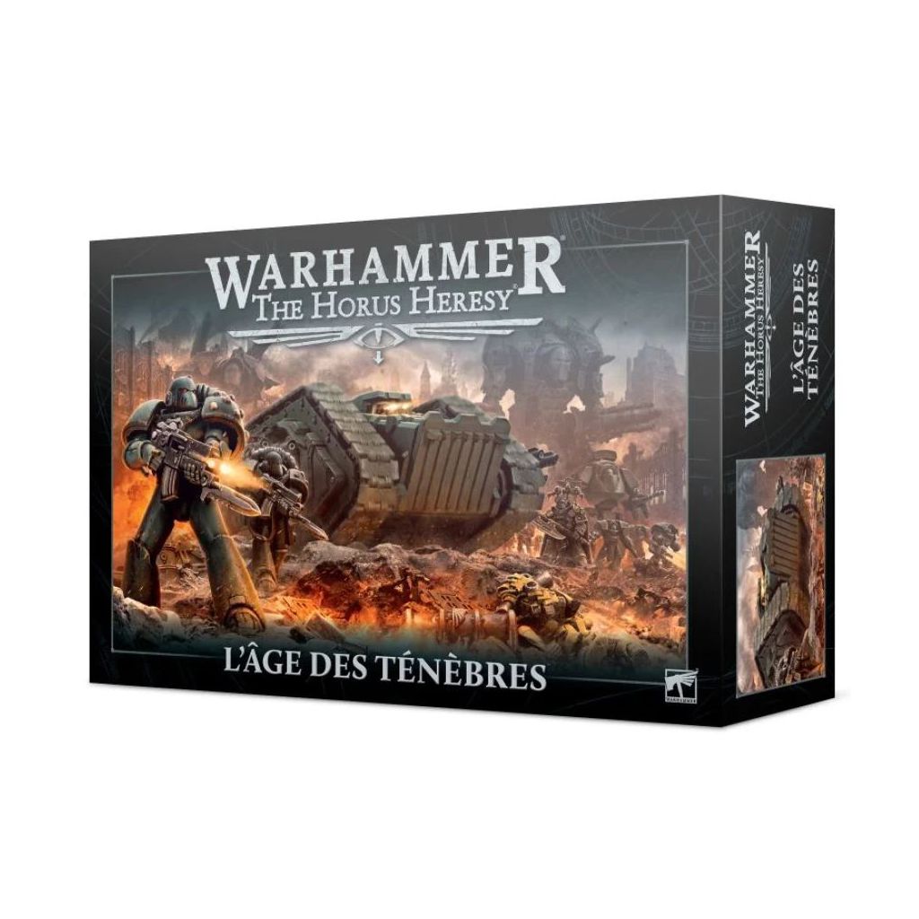 Le Livre de Règles Warhammer: The Horus Heresy – L'Âge des Ténèbres est disponible séparément. Les figurines de cette boîte de base seront disponibles séparément à date ultérieure.