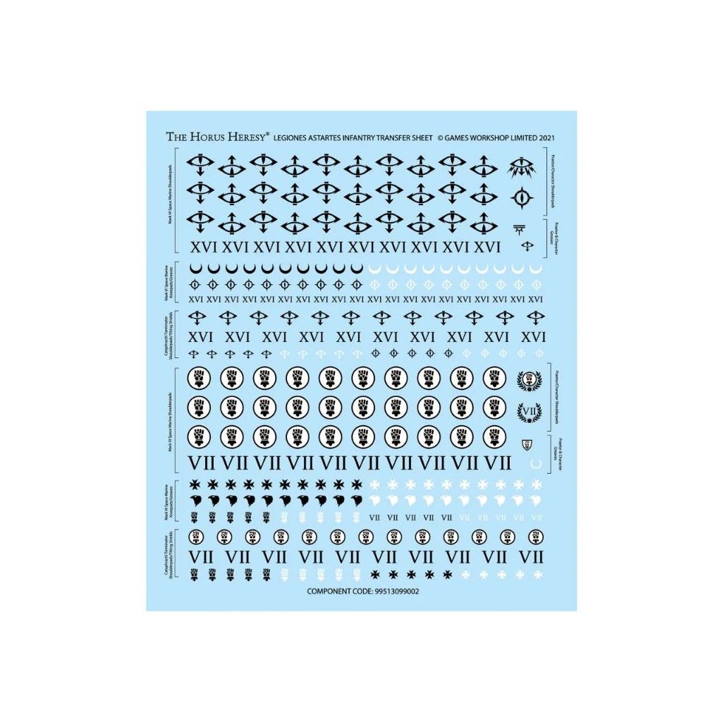 Cette figurine ne comporte pas de marquage de Légion, pour permettre aux hobbyistes de Warhammer de la peindre à leur guise. Ceci dit, la boîte contient une planche de décalcomanies avec 42 marquages optionnels et de l'iconographie pour les Légions des Sons of Horus et des Imperial Fists.