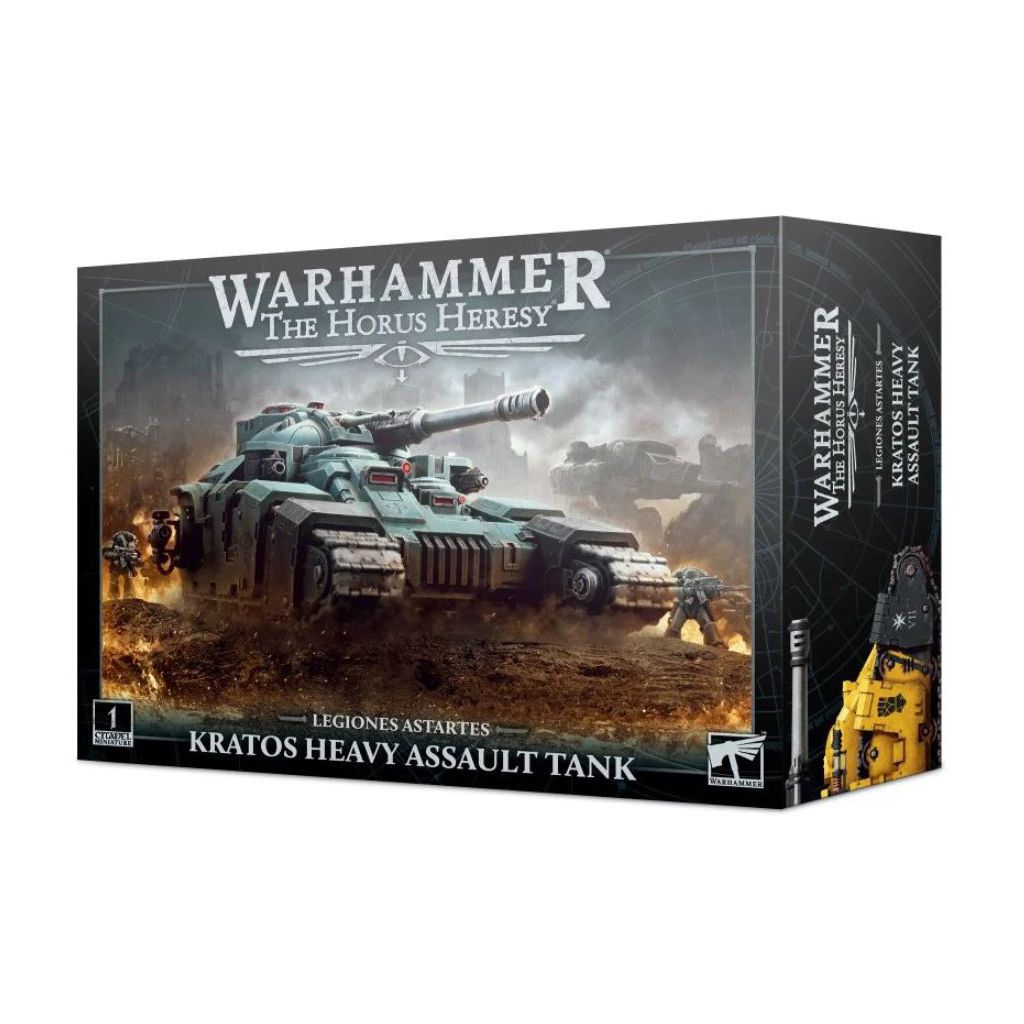 Ce kit plastique permet d'assembler un Char d'Assaut Lourd Kratos, machine de guerre quasi impénétrable hérissée d'armement lourd. On peut doter cet impressionnant véhicule d'une des puissantes armes de tourelle suivantes: le polyvalent obusier Kratos, le fuseur-éclateur antichar ou la brûlante cardanelle volkite. Il dispose aussi d'un autocanon coaxial et d'une paire d'armes de coque: autocanons, bolters lourds, canons laser ou arquebuses volkites. À cela s'ajoute une paire d'armes latérales: bolters lourds, lance-flammes lourds, canons laser ou couleuvrines volkites.