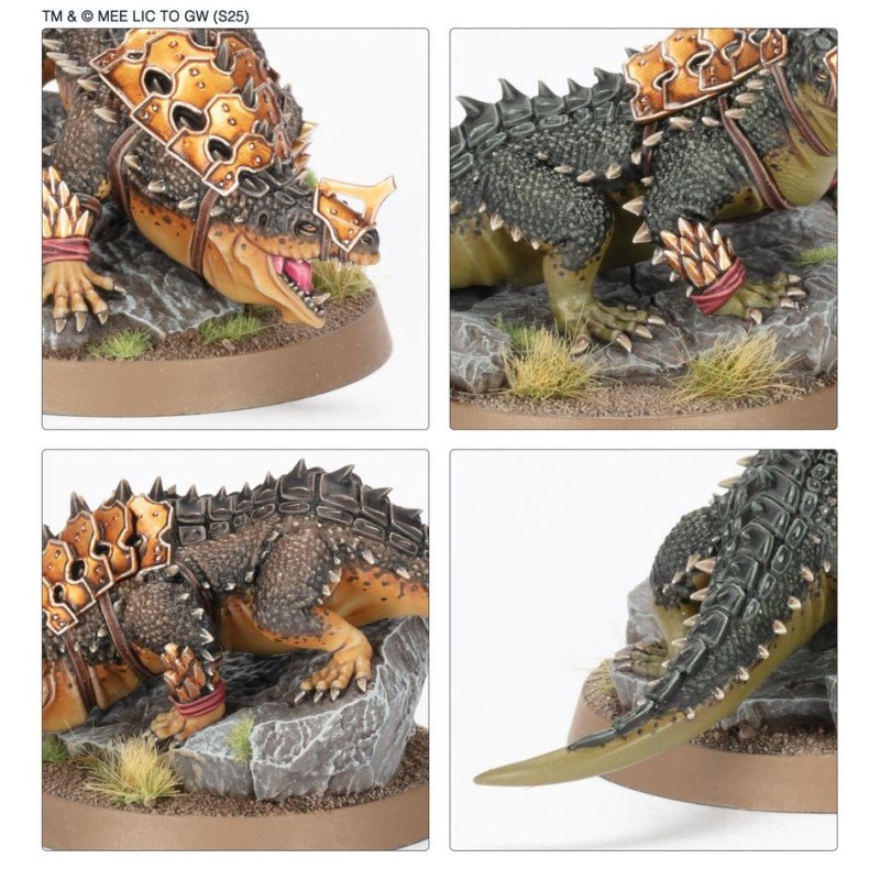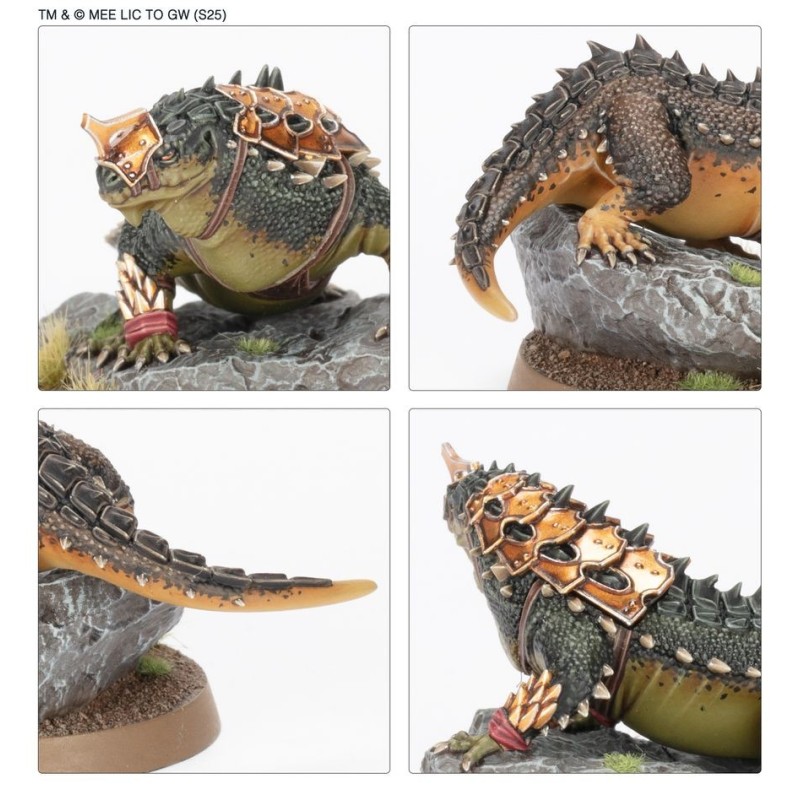 Description du produitLes Dracs de Guerre de Rhûn sont très rares, même dans les franges orientales de la Terre du Milieu. Ces reptiles territoriaux sont de nature vicieuse, leurs puissantes mâchoires peuvent arracher le bras d'un humain et le venin qu'ils injectent laisse leurs proies affaiblies et vulnérables. Les armées d'Orientaux déploient régulièrement certaines de ces bêtes quand elles se rendent à la guerre, car ces dangereuses créatures font la fierté du Culte du Dragon.