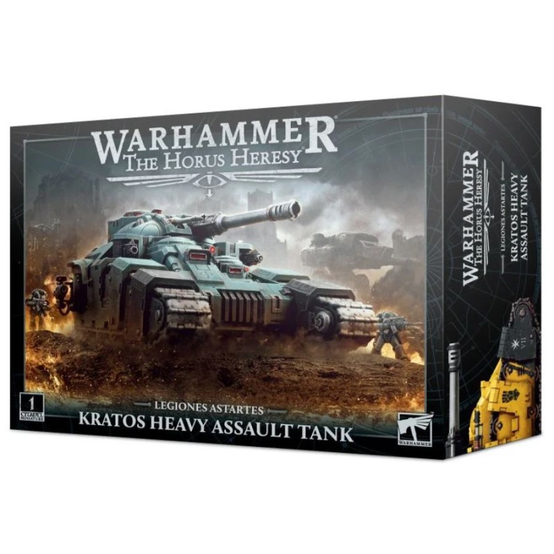 Ce kit plastique permet d'assembler un Char d'Assaut Lourd Kratos, machine de guerre quasi impénétrable hérissée d'armement lourd. On peut doter cet impressionnant véhicule d'une des puissantes armes de tourelle suivantes: le polyvalent obusier Kratos, le fuseur-éclateur antichar ou la brûlante cardanelle volkite. Il dispose aussi d'un autocanon coaxial et d'une paire d'armes de coque: autocanons, bolters lourds, canons laser ou arquebuses volkites. À cela s'ajoute une paire d'armes latérales: bolters lourds, lance-flammes lourds, canons laser ou couleuvrines volkites.