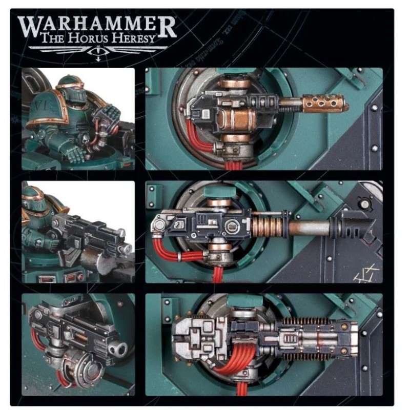 Ce set est constitué de 221 éléments en plastique, et est fourni avec 1x Planche de décalcomanies de Véhicules Legiones Astartes avec 44 marquages et icônes des Légions des Sons of Horus et des Imperial Fists. Cette figurine est fournie non peinte et nécessite assemblage .