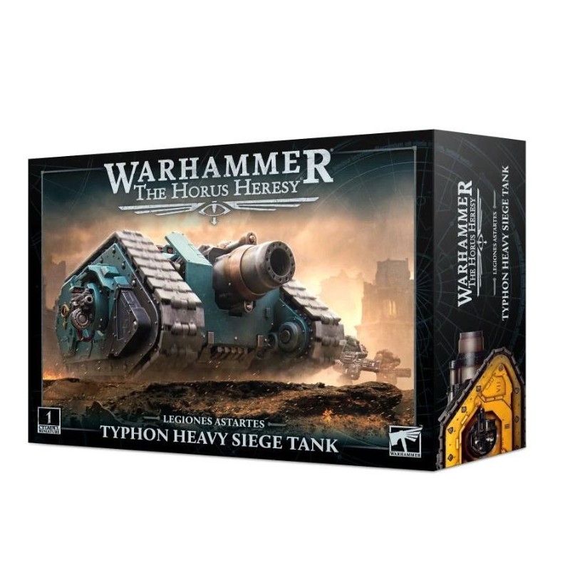 Ce kit permet d'assembler un Char de Siège Lourd Typhon, un char lourdement blindé équipé d'un canon véritablement massif. L'armement primaire de ce formidable véhicule est le canon de siège Dreadhammer, une arme montée sur l'axe central et capable de fendre les bunkers, de réduire en miettes les blindés ennemis et de pulvériser des escouades entières. En plus de son arme principale, le Typhon dispose également de deux armes latérales au choix parmi des bolters lourds, des lance-flammes lourds, des canons laser ou des couleuvrines volkites. Le canon de siège et les armes en tourelle peuvent être assemblés sans colle pour que leur position puisse être ajustée pendant le combat.