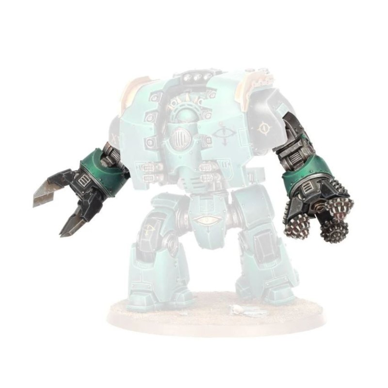 - Assemblez deux poings de Dreadnought, chacun équipé d'une pince de siège ou d'un trépan de siège