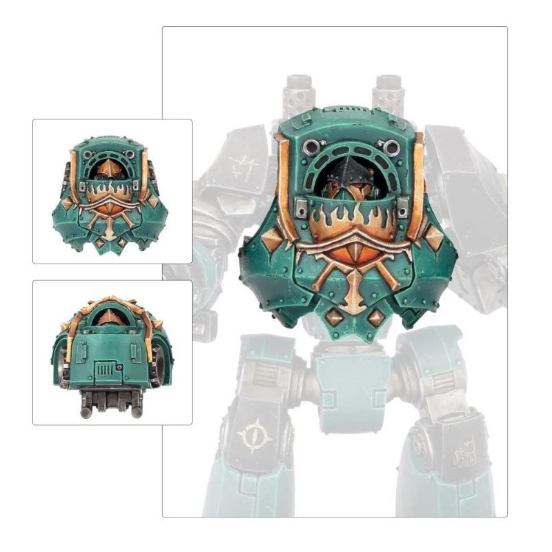 - Tête et torse en résine, compatibles avec le kit plastique du Contemptor Dreadnought