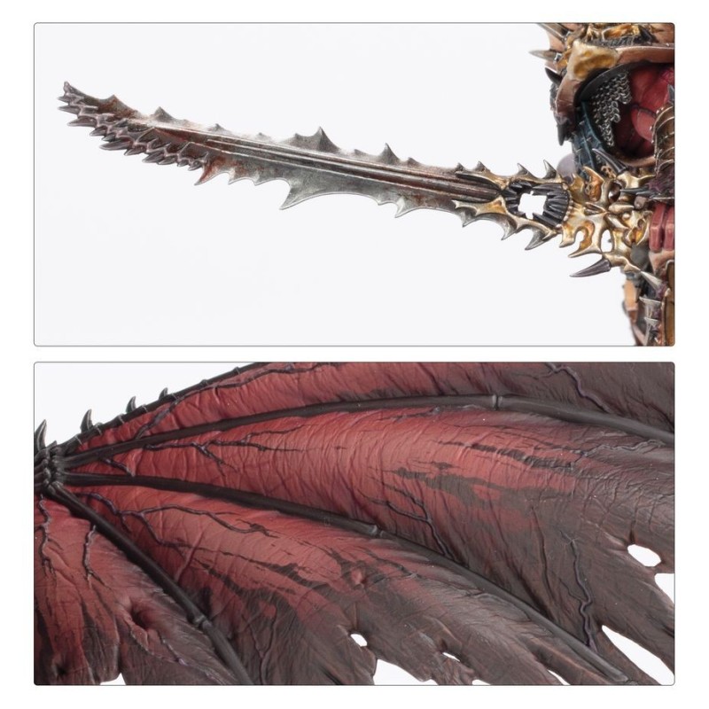 Description du produitAngron, le Primarque de la XIIe Légion, a succombé au Dieu du Sang, Khorne, dans une déchéance pratiquement inarrêtable qui a vu son esprit comme sa chair finir corrompus. Sa rage sans cesse présente l'a submergé, et lorsqu'il reparut, plus rien ne restait de sa noblesse et de sa part infime de subtilité – il était devenu un Primarque Démon, ailé et insensible.