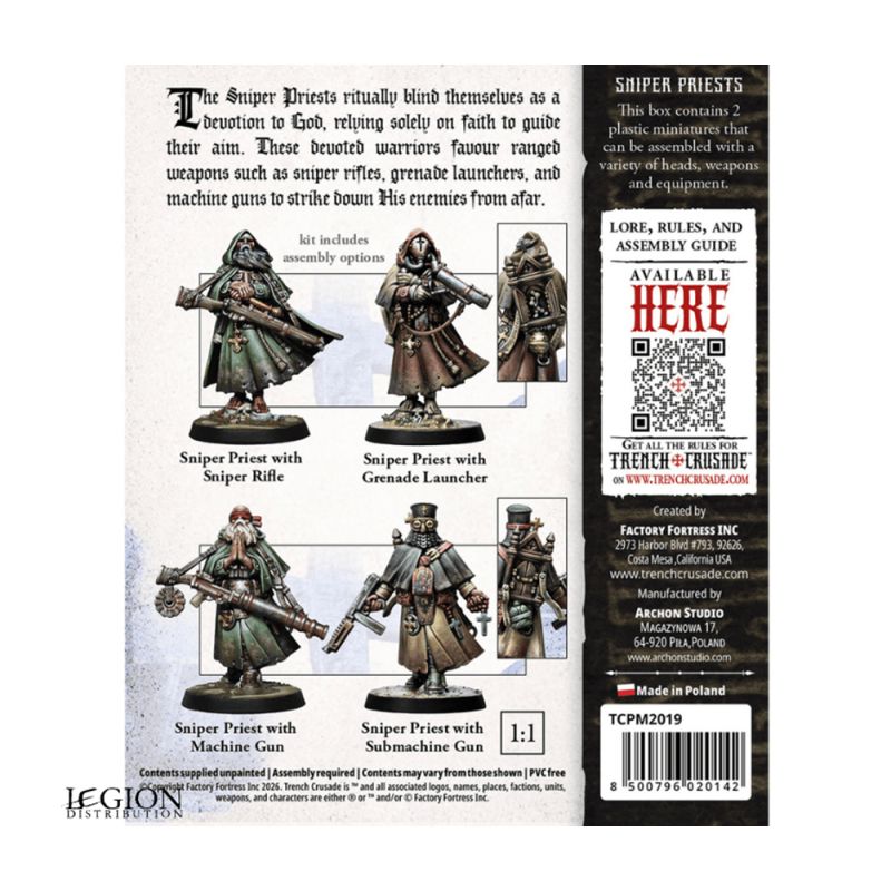 Description du produitLes prêtres tireurs d'élite de New Antioch sont les maîtres incontestés du combat à longue distance. S'aveuglant rituellement pour éviter tout doute, un prêtre tireur d'élite vise uniquement grâce à sa foi en Dieu, ce qui lui confère une précision inégalée, qu'il utilise un fusil de précision, une arme automatique lourde ou même un lance-grenades.