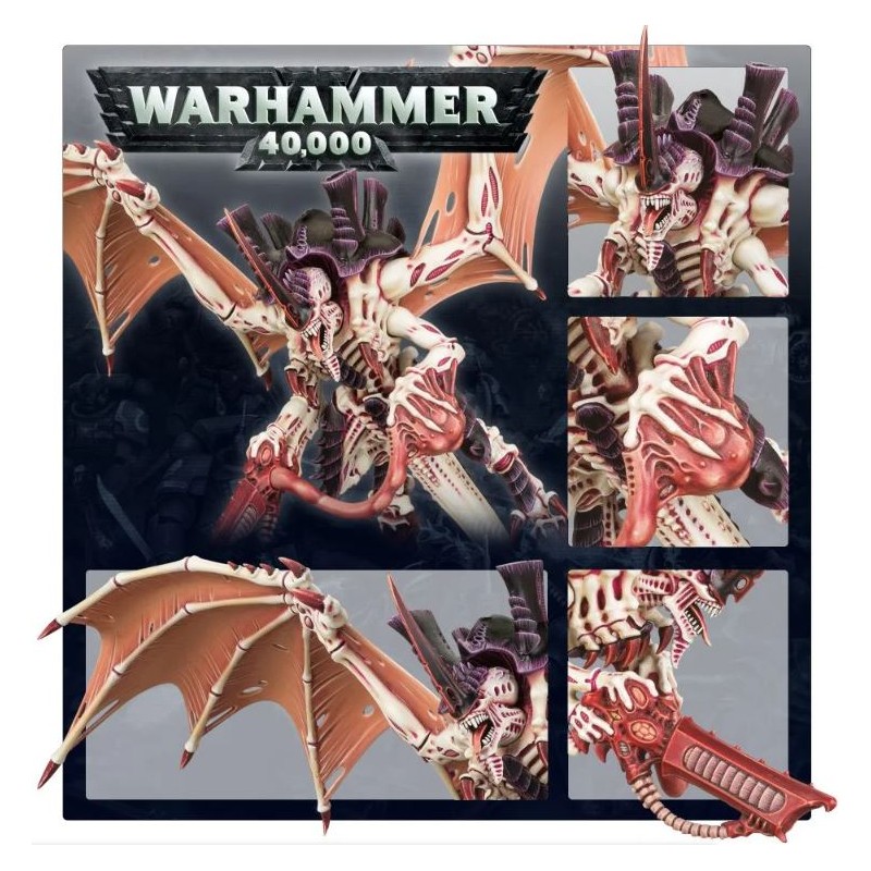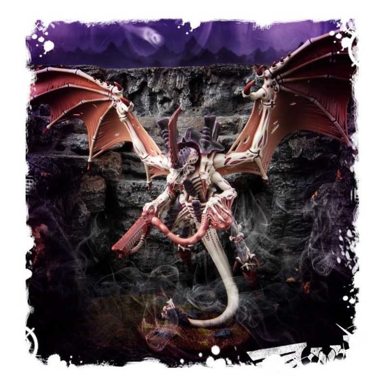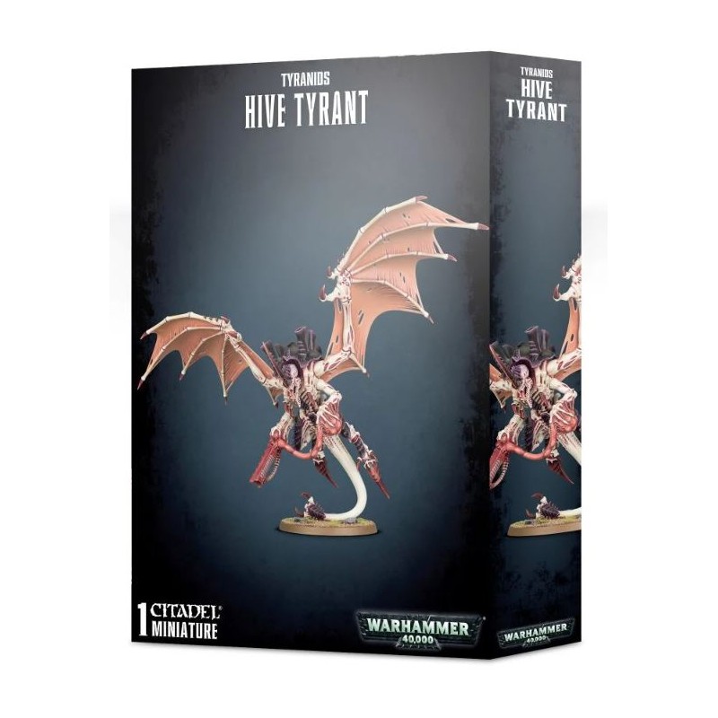 Description du produitLe tyran des ruches est une figurine très dynamique en dépit de sa masse. Il possède deux immenses ailes et seule sa queue est en contact avec le sol, ce qui permet de donner l’impression que la créature s’élance dans les cieux (ou plonge sur sa proie). Tout comme les autres tyranides, il possède une carapace chitineuse hérissée de cheminées à spores, et un horrible exosquelette. Le tyran des ruches est une pièce de choix dans toute collection de tyranides.