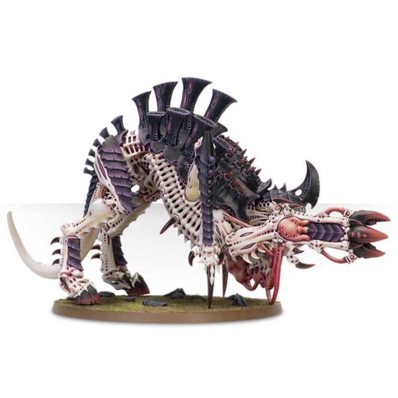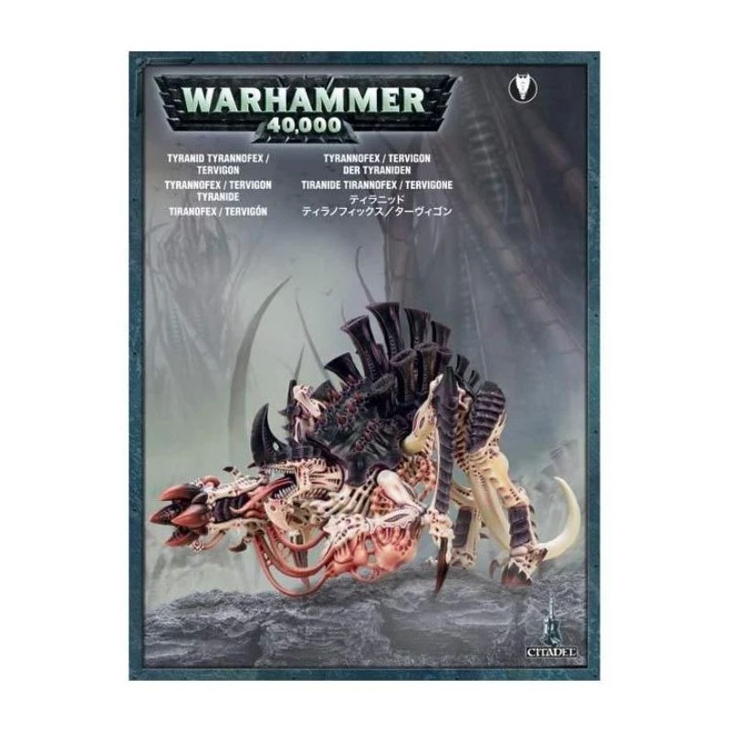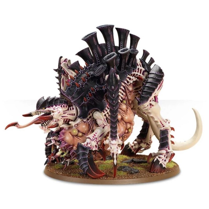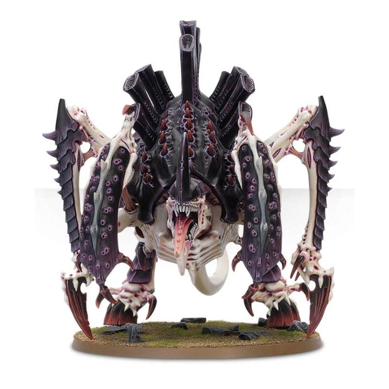 Description du produitLe Tyrannofex fait étalage de toute l’horreur qui caractérise le Grand Carnassier, et constitue ainsi un ajout macabre adapté à une collection de tyranides. Il marche sur ses quatre membres, dont deux possèdent des sabots tandis que les autres s’achèvent par des lames. La carapace de la bête est hérissée de cheminées à spores et son corps se termine par une queue segmentée. Sa partie inférieure n’est pas moins hideuse, car il peut être équipé d’une ruche d’écorcheurs ou d’un canon briseur.
