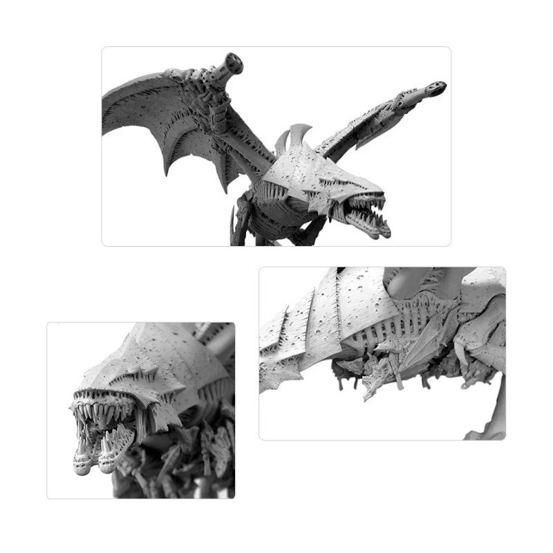 Description du produitÉnorme construction biologique Tyanind armée de canons biologiques massifs et de talons faucheurs. Le Tyranid Harridan comprend 4 grappes de gargouilles qui se fixent sur la poitrine.