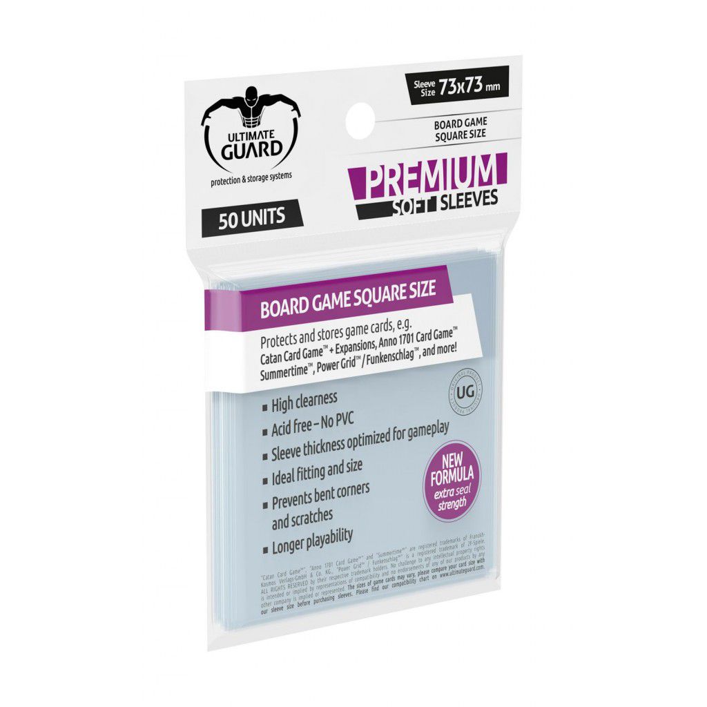 Pack de 50 pochettes haute qualité pour stocker et protéger vos cartes de jeux de plateau au format carré comme Catan Card Game™ + Expansions, Anno 1701 Card Game™, Summertime™, Power Grid™ / Funkenschlag™, et plus encore.