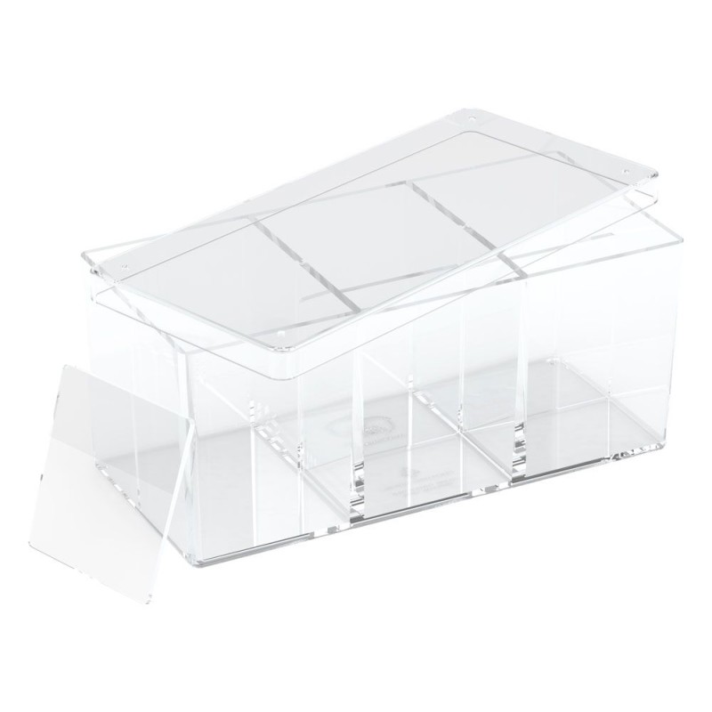 La boîte empilable Stack´n´Safe Card Box 480 dans la gamme de boîtes pour cartes haute qualité ULTIMATE GUARD est fabriquée en polystyrène transparent et peut contenir jusqu´à 480 (6 x 80) cartes en pochettes (par ex. ULTIMATE GUARD Supreme Sleeves). Cette boîte robuste comporte 6 compartiments égaux et dispose de 3 intercalaires amovibles. Le couvercle facile à soulever s´emboîte parfaitement et garde vos cartes en sécurité.