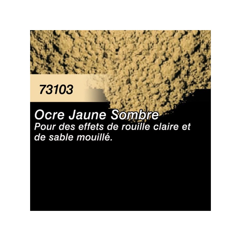 En somme, le Pigment Vallejo Dark Yellow Ochre est bien plus qu'une simple couleur. C'est une invitation à explorer l'infini potentiel créatif de votre imagination, avec des pigments qui captent la richesse et la diversité du monde qui nous entoure. Avec ces pigments à vos côtés, chaque maquette et chaque diorama devient une toile sur laquelle vous pouvez peindre des histoires épiques et des paysages inoubliables. Combinez le avec le pigment Vallejo® Light Yellow Ochre référence 73102.