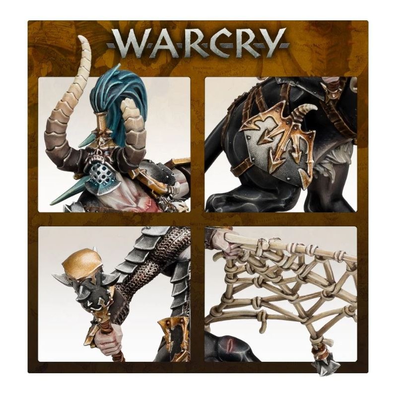 Description du produitLes Centaurions sont des créatures terrifiantes qui peaufinent leurs compétences et leur force dans les fosses de la Varanspire. Chargeant tête baissée dans la mêlée sur leurs sabots durs comme le fer, les Centaurions font un véritable carnage à chaque coup de leurs armes mortelles, qu'ils manient à l'aide de leurs quatre bras. Ceux qui se dressent devant eux finissent pris dans leur filet, embrochés sur leur lance, réduits à l'état de pulpe par leur massue ou piétinés à mort. Les Maréchaux sont les plus puissants de leur espèce et se sont sortis de l'arène pour intégrer de puissantes bandes et légions. Mais malgré leur férocité bestiale, ce sont des créatures rusées et subtiles ayant juré de rassembler des bandes au service de leur Maître des Ténèbres.