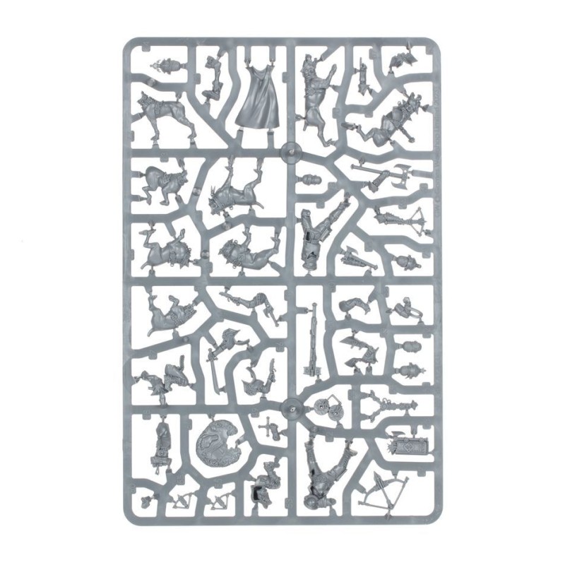 Ce kit plastique permet d'assembler une bande complète de Chasseurs du Corps d'Éclaireurs, utilisable dans les parties de Warcry. Menés par un Veilleur expérimenté et ses redoutables Chiens Courants, le Défricheur et les Pionniers en armure légère s'attaquent à leurs ennemis avec leurs lames et leurs arbalètes, tandis de robustes Cuirécorces emploient un armement plus lourd pour s'occuper des cibles résistantes à l'aide d'arbalètes renforcées. Vous retouverez de nombreuses options esthétiques et d'armes pour ajouter de la variété à votre bande, avec notamment des têtes et des gargouillains.
