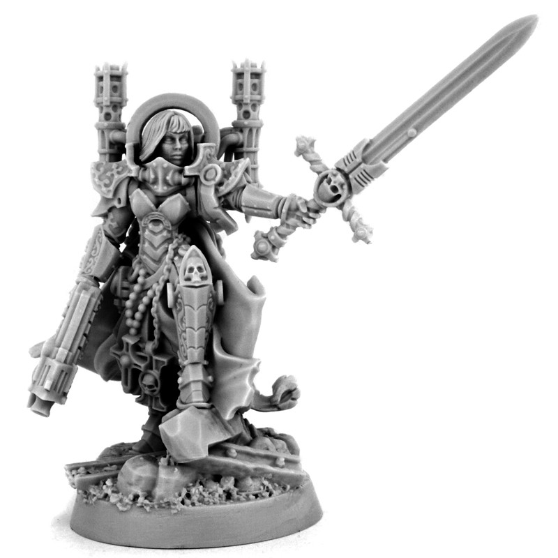 Une figurine parfaite pour jouer un héros d'une armée de moniale guerrière dans divers jeux futuristes.