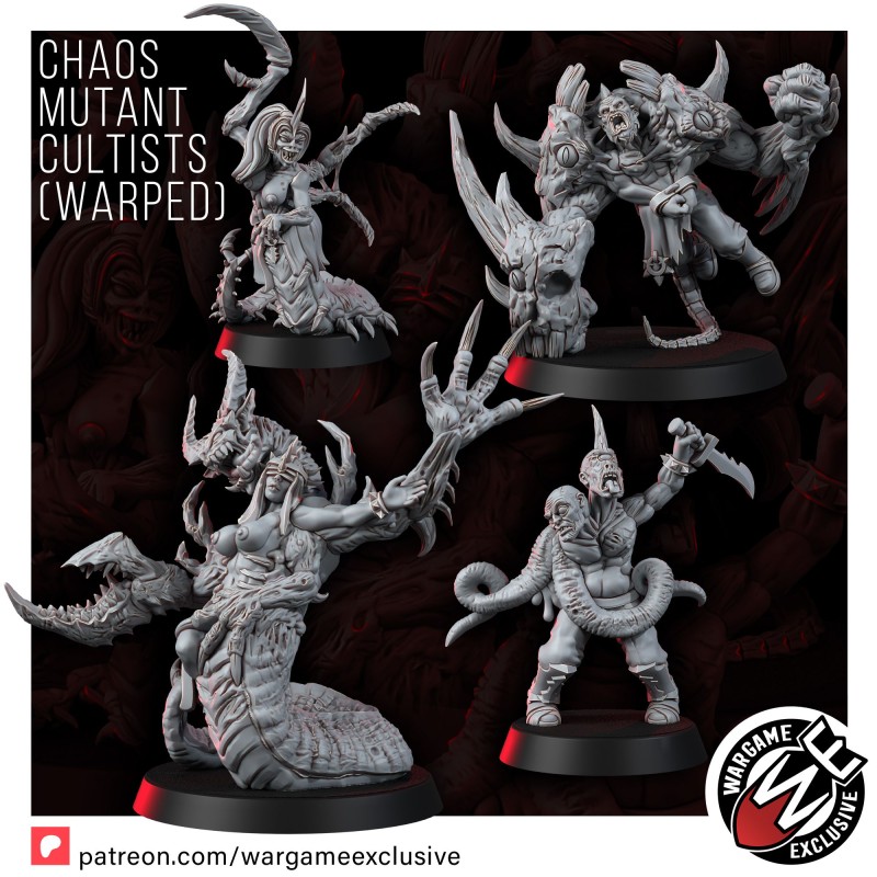 Enfin, le Culte mutant de la Volatilité du Changement, une créature de l'anarchie pure. Drapés dans des robes aux formes changeantes, ses nombreux membres serrent la faucille de la métamorphose, héraut de la roue de la transformation qui tourne sans cesse.