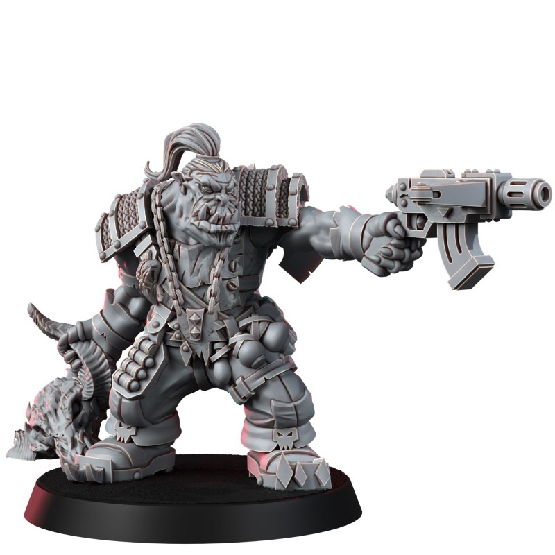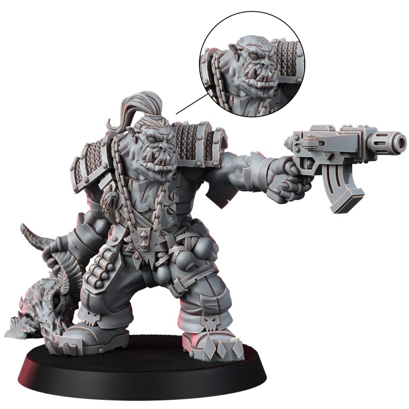 Deux figurines parfaites pour jouer un Chef Ork et son acolyte dans divers jeux futuriste.