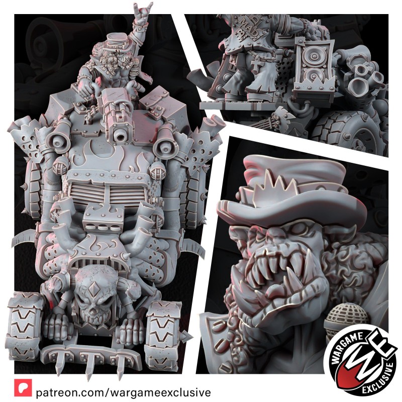 Imaginez : une horde d'Orks, gonflés à bloc, tonnant à travers les terres désolées, leurs moteurs rugissant et leurs énormes haut-parleurs faisant trembler le sol à chaque battement. Ce n'est pas seulement une question de vitesse, c'est aussi une question de style et de déclaration qui crie : « Les Orks règnent ! Ce Rock Buggy est un symbole de l'ingéniosité des Orks, combinant leur amour de la vitesse, du bruit et du chaos total.