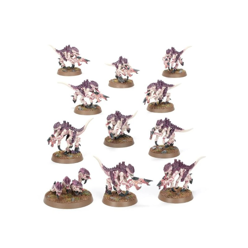 - 10x Termagants: Des hordes cavaleuses de créatures tyranides simples, équipées d'armes qui tirent des projectiles vivants