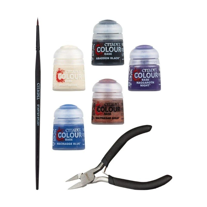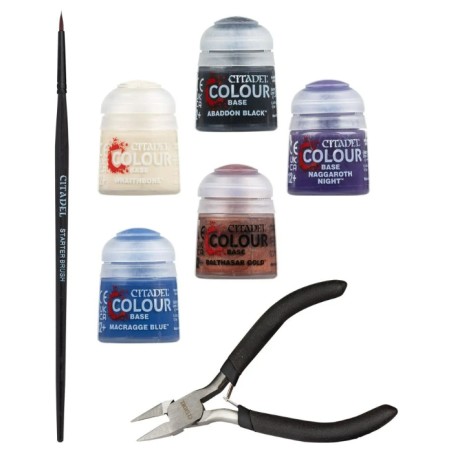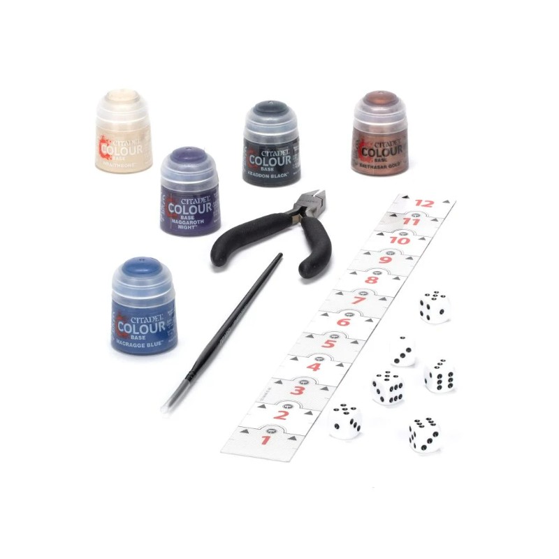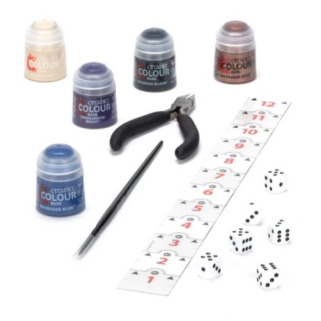 - 16 figurines à emboîter qui constituent deux forces équilibrées (une de Space Marines et une de Tyranides), ainsi que des outils hobby pour les assembler et les peindre