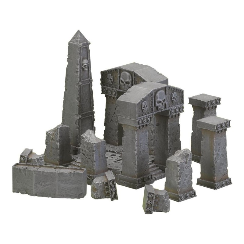 Ce kit en plastique modulaire permet d’assembler plusieurs structures écroulées pouvant servir d’éléments de terrain dans vos parties de Warhammer: The Old World. Que vous les éparpilliez sur le champ de bataille comme simples décors ou que vous les rassembliez en une ruine sinistre, elles seront du plus bel effet sur votre table et feront un bon ajout à votre collection. Ce kit polyvalent peut être assemblé de diverses manières, et vous pouvez en combiner plusieurs pour créer des structures encore plus imposantes. Vous trouverez également divers crânes et de sinistres sculptures que vous pouvez ajouter n’importe où.
