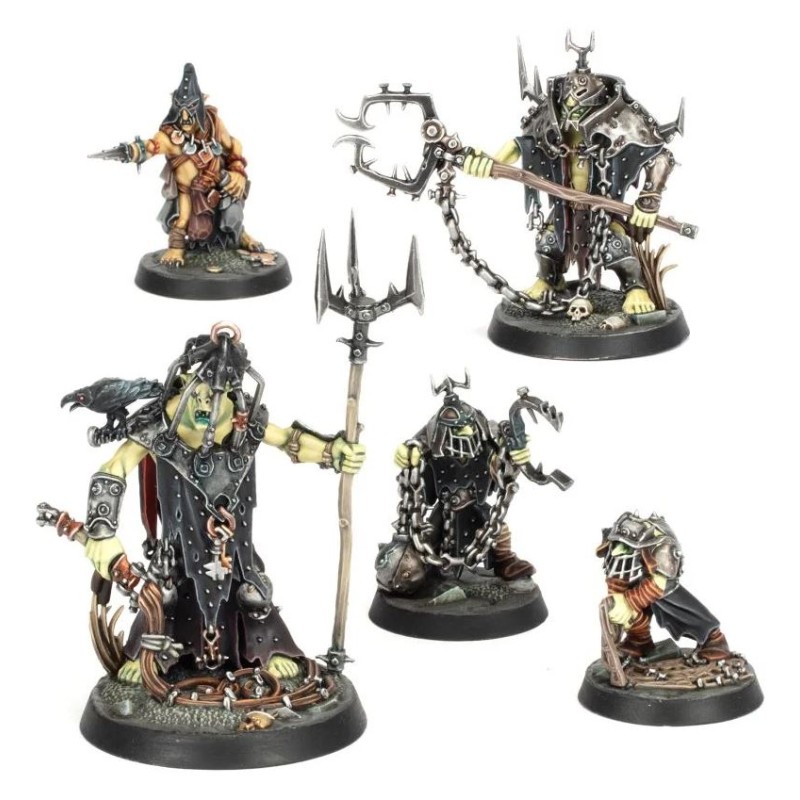 – La bande complète de la Bande Ruzée – un gang de sournois coupe-jarret peaux-vertes venant des marais de Ghur, et voulant s'emparer des recoins marécageux de Harrowdeep. Assemblez rapidement votre bande de cinq figurines à emboîter, moulées en plastique vert foncé, et composez votre pile grâce aux cartes de combattant et aux 32 cartes au format Rivaux, pour vous bastonner le plus vite possible.